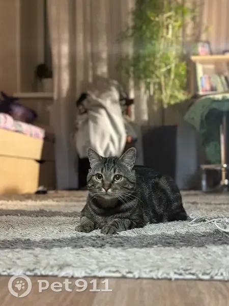 Кот, Темно- Коричневый окрас с разводами как у змеи, как у британского полосатого, с пузиком, не худой, без ошейника, кастрированный, глаза зеленого цвета