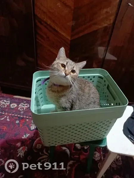 Кошечка, девочка, глаза янтарного цвета, окрас агути, стерилизована, шрам на животике ещё заметен, откликается на кличку Чифа, жёлтый ошейник с колокольчиком