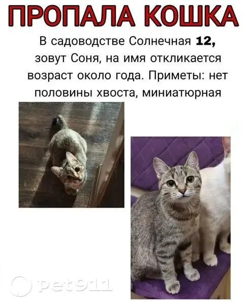 Пропала в районе дач за верхними черемушками. Миниатюрная, отсутствует половина хвоста. Прошу дать обратную связь, если кто вдруг видел ее или забрал себе